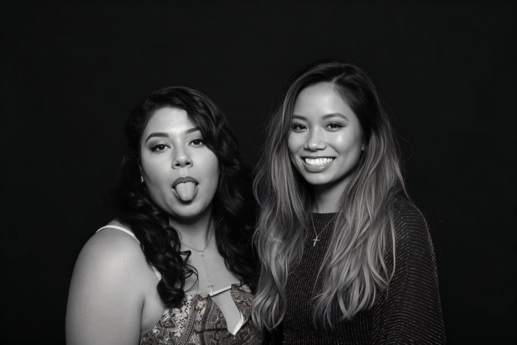 We recommend to a single photo with a minimal top left or right event logo for the photo and print. We also suggest limited props to just a few simple items or even best, no props. Unlike our other photo booth options our Glam Photo Booths are completely about style and making your guests look and feel glamorous so speed is no factor, we take our time with each set of guests to produce the best per session.